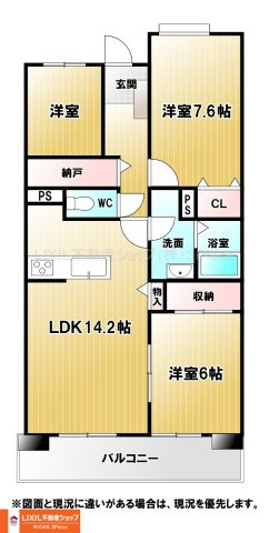 LDK 14.2帖 1室 / 洋室 7.6帖 1室 / 洋室 4.6帖 1室 / 和室 6.0帖 1室 / |