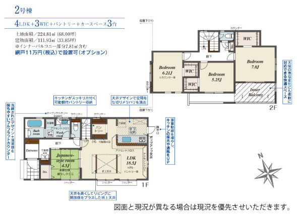 収納豊富な4LDK。並列駐車3台可。