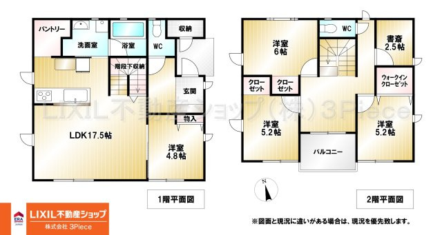 LDK 17.5帖 1室 / 洋室 4.8帖 1室 / 洋室 6.0帖 1室 / 洋室 5.2帖 2室 / S(納戸) 2.5帖 1室 / |
