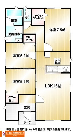 LDK 16.0帖 1室 / 洋室 7.5帖 1室 / 洋室 5.2帖 2室 / |