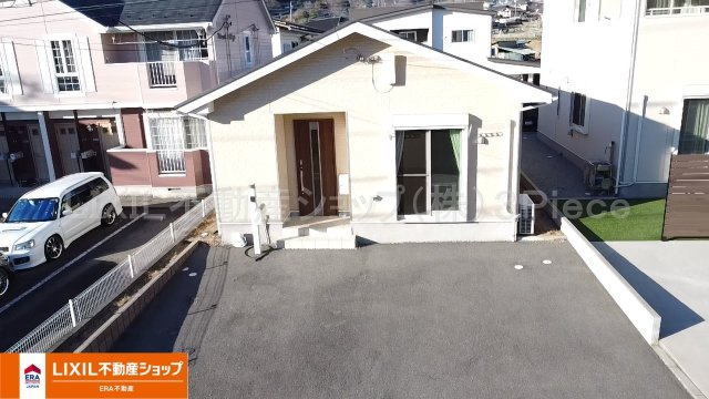16帖の広々としたリビング、駐車スペースに3台駐車可能。