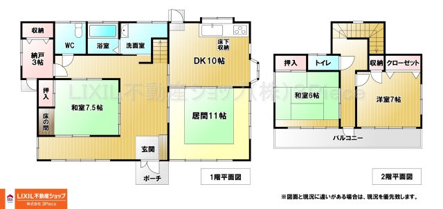 DK 10.0帖 1室 / L 11.0帖 1室 / 和室 7.5帖 1室 / S(納戸) 3.0帖 1室 / 洋室 7.0帖 1室 / 和室 6.5帖 1室 / |