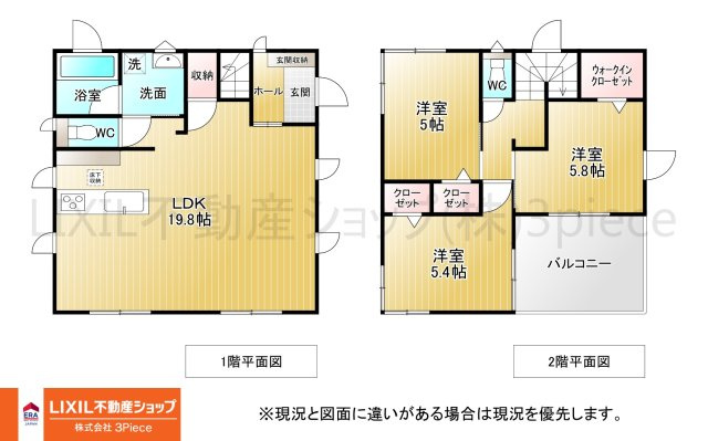 LDK 19.8帖 1室 / 洋室 5.8帖 1室 / 洋室 5.4帖 1室 / 洋室 5.0帖 1室 / S(納戸) 1.3帖 1室 / |